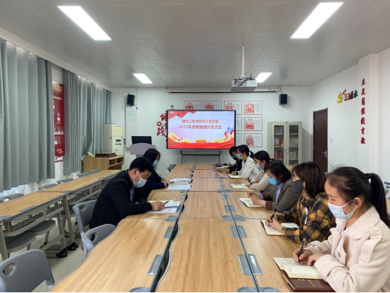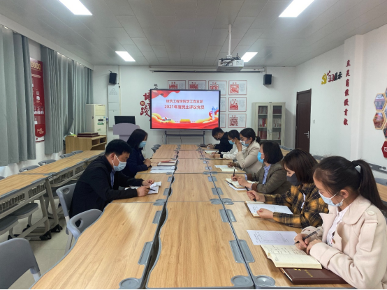 按照中共河南应用技术职业学院委员会文件应院党字【2022】15号文件要求,2022年4月5日中午,建筑工程学院学工党支部在党员活动室516召开2021年度基层党组织组织生活会暨民主评议党员大会,会议由学工党支部书记马春燕主持,11名党员教师以及69名预备党员学生参加会议,会议采用线上线下相结合的方式召开。