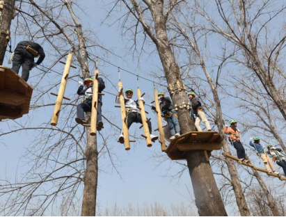 30余名党员教师共同在“龙舟秋千“拓展活动中感受团队力量,在“树间跳动”探险项目中激发自我潜能,大家积极配合,敢于尝试,勇于接受挑战,充分展现了建工教师锐意进取、团结协作、奋勇争先的精神风貌。整个活动过程既生动活泼又紧张激烈,促使全体党员干部克服心理障碍,加强沟通交流,提升责任担当。