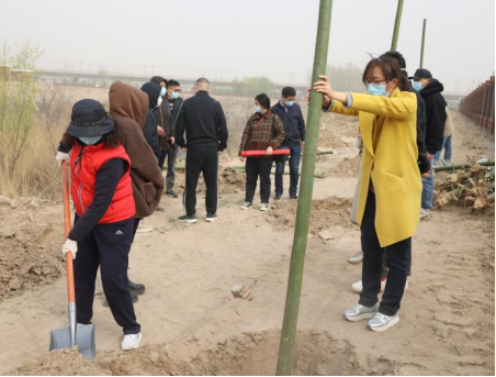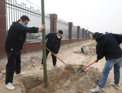 春风拂绿,植树现场一派热火朝天的劳动景象,党员干部们热情高涨、干劲十足,在党总支书记马春燕和院长张虎的带领下,大家来到植树点,三五成组,分工协作,一起挥锹铲土、运苗栽植、填坑夯苗、提桶浇水,每道工序都认真细致、一丝不苟,各环节都衔接有序、相互配合。在大家的共同努力下,一棵棵树苗顺利“安家落户”,迎风挺立, 每两人认领一颗树,寓意与树一同成长,并制作专属卡片挂在树上。马春燕强调,各位党员教师要以身作则、真抓实干、敢于担当,务实功、出实招、求实效,充分发挥党员先锋模范带头作用。