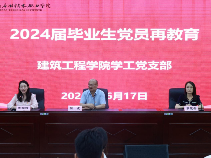 为深入贯彻落实习近平新时代中国特色社会主义思想,加强对毕业生党员的党性教育和思想引领,铸牢中华民族共同体意识,2024年6月17日,建筑工程学院在郑州校区A516会议室组织召开2024届毕业生党员再教育主题会议。本次会议由建筑工程学院党总支书记张虎主持,党总支副书记刘亚娟,党政办主任李慧杰及2024届毕业生党员参加。