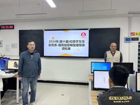 2024年10月29日下午,河南应用技术职业学院2024年(第十届)校级学生技能竞赛“建筑信息模型建模赛项”顺利举办。本赛项由建筑工程学院承办,张虎书记、李勇院长和任旭凯副院长全程指挥,董帅、王翔、高钰三位老师指导,在E204实训室如期举行。