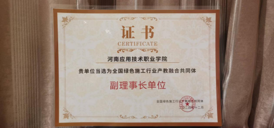在此次大会上,我校凭借其卓越的产教融合成果和在绿色施工行业教育领域的突出贡献,被授予“全国绿色施工行业产教融合共同体副理事长单位”称号。这一荣誉不仅是对学校长期以来致力于产教融合工作的肯定,更是对其在推动绿色施工行业教育创新与发展方面所做出的努力的认可。