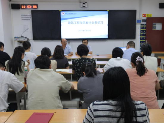 为进一步提升教师队伍的专业素养与教学能力,紧跟学校职业教育发展步伐,积极推进智慧课程建设,建筑工程学院于6月10日下午在开封校区F107开展业务学习活动。会议由院长李勇主持,党总支书记张虎及全体教职工参加。