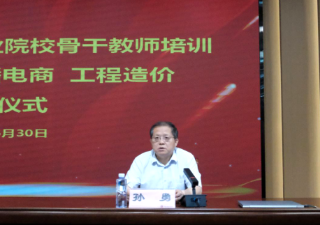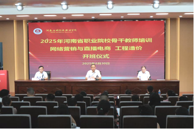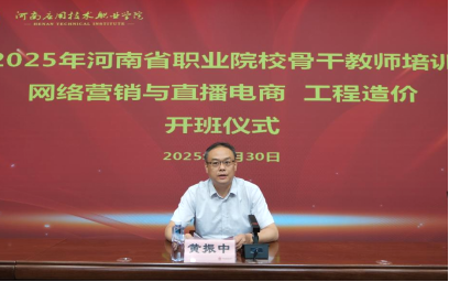 6月30日上午,我校承办的2025年河南省职业院校骨干教师(网络营销与直播电商、工程造价)培训开班仪式在郑州校区举行。副校长黄振中、教务处处长孙勇、建筑工程学院院长李勇出席仪式,仪式由李勇主持。