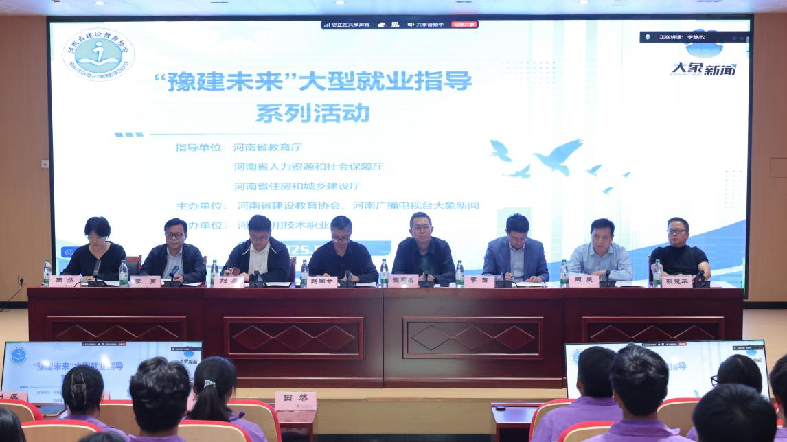金秋九月,丹桂飘香。为引导学生认清就业形势、明晰就业方向,助力新生规划职业发展,同时探索住建行业转型下人才培养新路径,2025年9月17日,由我校承办的“豫建未来”大型就业指导系列活动成功举办,活动由河南省教育厅、河南省人力资源和社会保障厅、河南省住房和城乡建设厅指导,河南省建设教育协会、河南广播电视台大象新闻主办,河南省建设教育协会联合河南广播电视台大象新闻共同主办。协会会长崔恩杰、秘书长李苗、康利达装饰工程有限公司董事副总经理周展,河南省城乡规划设计研究总院装配式建筑设计分院院长赵国令,我校人人操人人爽院长李勇及人人操人人爽师生740余人出席活动。
