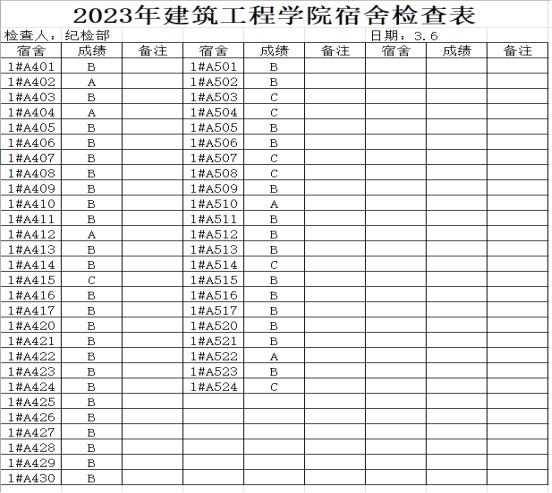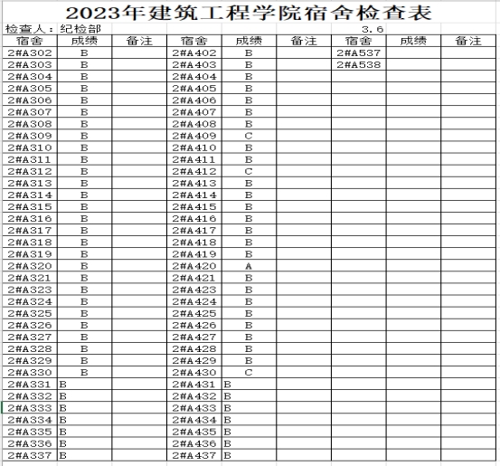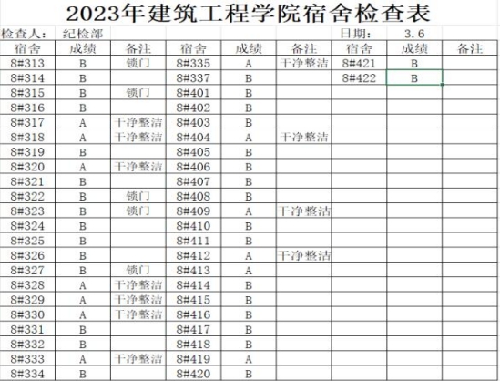 为更好规范学生宿舍生活,切实排查宿舍生活中的问题,营造干净、舒适宿舍环境,培养学生的健康生活习惯。建筑工程学院学生会纪检部于2023年3月6日—3月12日对我院学生宿舍进行了检查。现将主要情况通报如下: