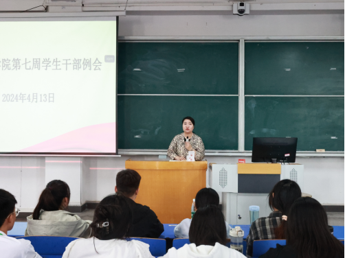 为进一步加强学生干部的自我建设,增强责任意识,增进各部门之间的交流,提高工作水平,建筑工程学院于2024年4月13日在郑州校区B301教室组织召开第七周学生干部例会。会议由建筑工程学院团总支书记王莹主持,全体学生会成员以及各班班长、副班长、团支书参加。