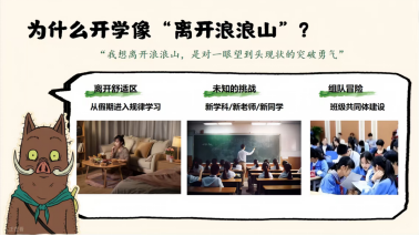 在热烈的讨论中,同学们逐渐达成共识:开学不是“被迫离开”,而是主动“翻越”——翻越惰性的“浪浪山”,拥抱自律的新学期;翻越迷茫的“浪浪山”,明确专业学习的目标;翻越胆怯的“浪浪山”,尝试参与更多实践活动,在成长路上不断突破自我。