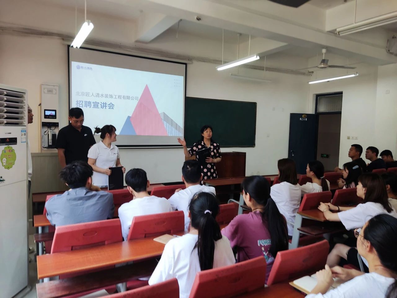 接着,北京匠人清水装饰有限公司的负责人向同学们详细地介绍了公司的发展背景、招聘岗位、薪资待遇及在公司就职的发展前景,同学们积极地与负责人沟通,公司负责人也非常有耐心地为小筑们进行解答,现场氛围如同这夏天一样充满激情活力。