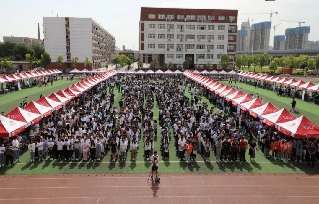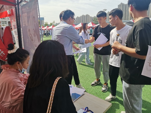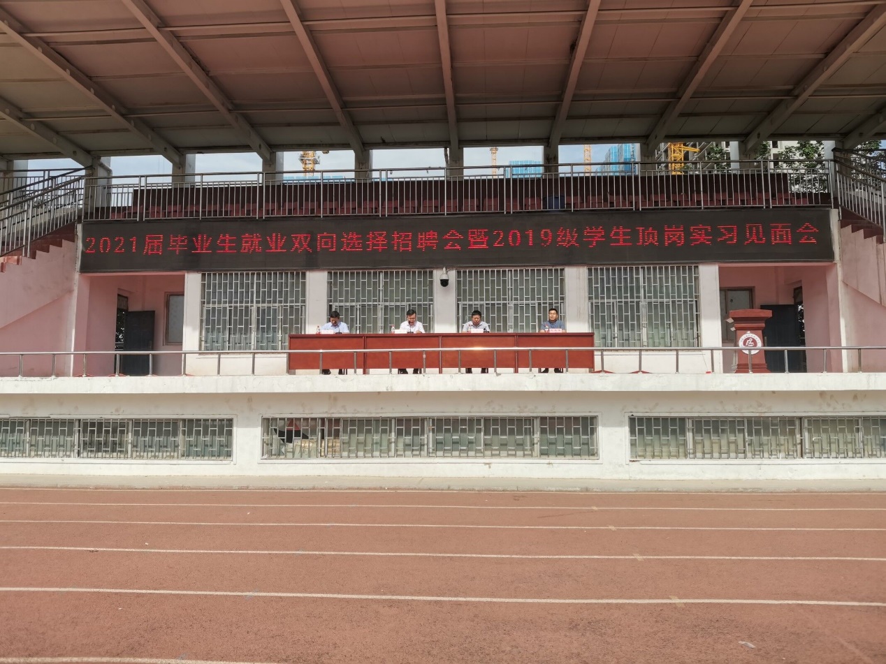 为喜迎建党百年,启航就业征程,2021年5月28日,我校在郑州校区田径场举行了“2021届毕业生就业双向选择招聘会暨2019级学生顶岗实习见面会”。学校校长范晓伟、党委副书记蒋清民、九六一集团副总裁范永军等领导出席校园双选会开幕式。开幕式由副校长刘振民主持。参与的成员还有院部领导、招生处负责人、辅导员、2021届毕业生及2019级顶岗实习学生。