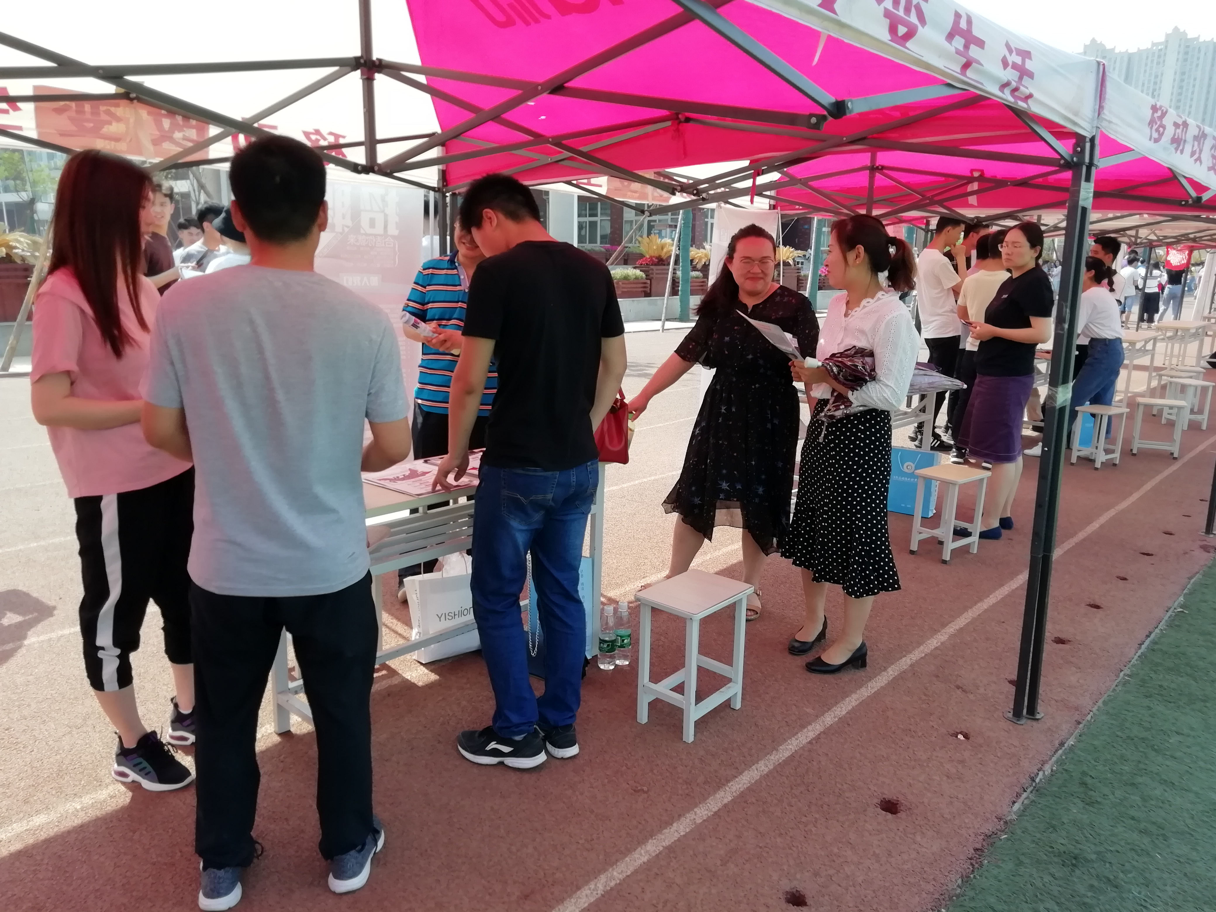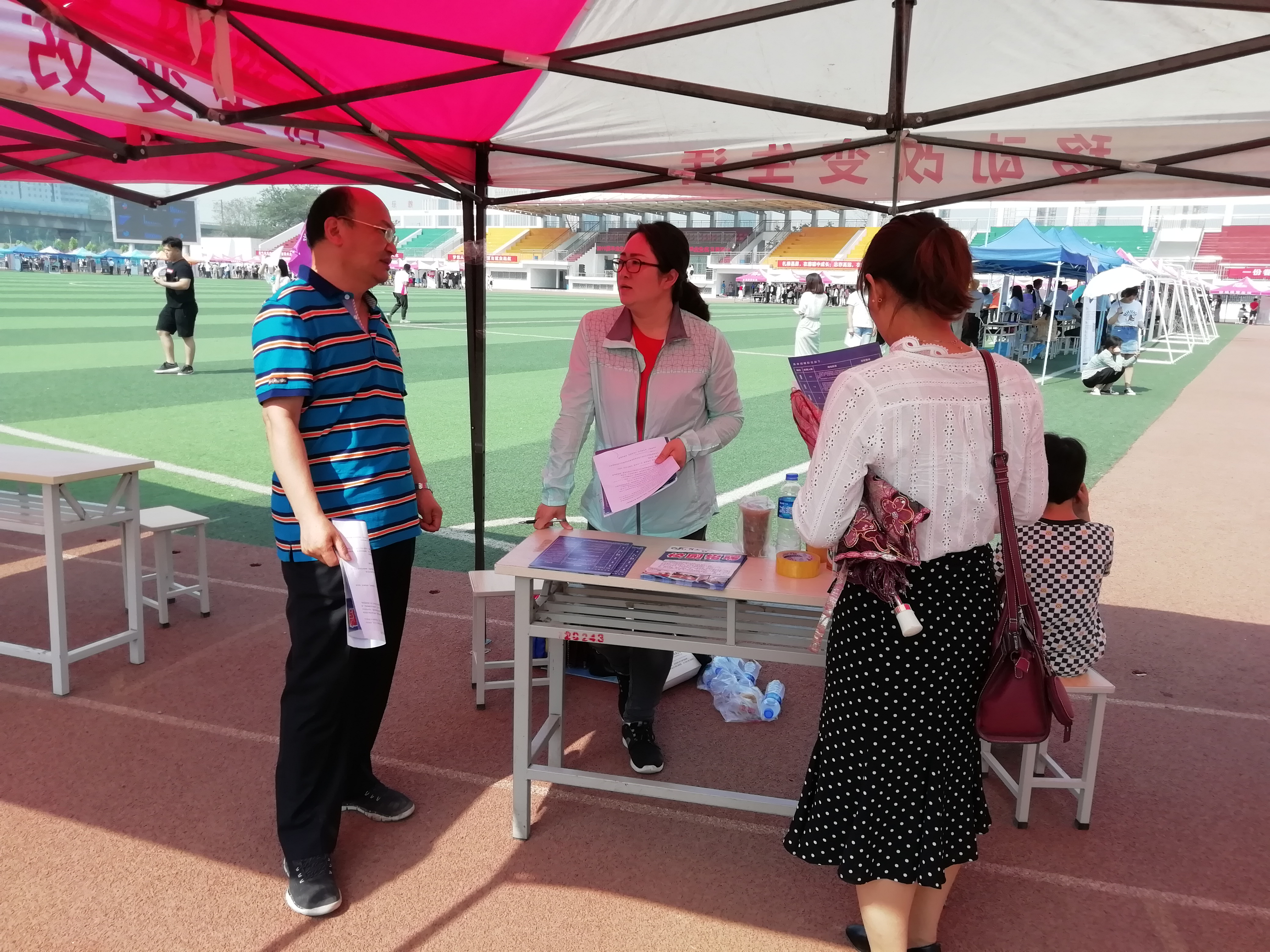 2019年5月25日上午9时,河南应用技术职业学院2019届毕业生就业双向选择招聘会暨2020届毕业生顶岗实习见面会成功如期召开,此次招聘会有近230家用人单位到场参会。建筑工程学院院长张虎带领建筑工程技术和建筑建筑工程管理两个教研室的老师刘高喜、鞠杰和高钰等,深入招聘现场调研了解用人单位对学生在专业需求、工作环境和工资待遇等方面的情况。