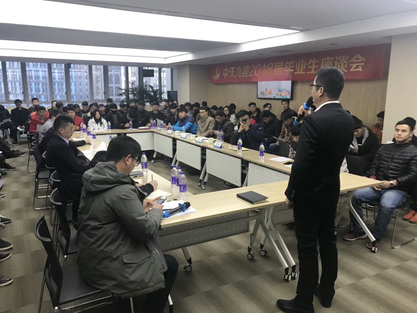 中天建设集团副总裁、中天九建总经理许向华对企业及学生实习的基本情况做了介绍。会议经过学生汇报,企业讲述,学生反馈,学校寄语和企业领导寄语几个环节。会议气氛热烈而活泼,大家畅所欲言,共话半年来的经历和体会,学生纷纷表示在顶岗实习过程中有很大的收获,感觉离开了学校自己身上的担子重了,思想成熟了。朱杰华经理同时也提出要求:同学们要吃苦耐劳,踏踏实实,不要眼高手低;要学以致用,努力工作,勤奋学习,多看书多动脑筋;要精益求精,不能有投机的思想,按照公司的标准规范完成任务,让自己满意,让领导满意。