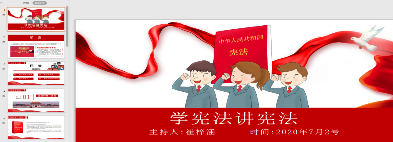 为让同学们更好地了解宪法,2020年7月1日至7月10日,在建筑工程学院团总支的组织下,各团支部积极学习《学宪法 讲宪法》,并以此为契机开展了网络青年团课集中学习。