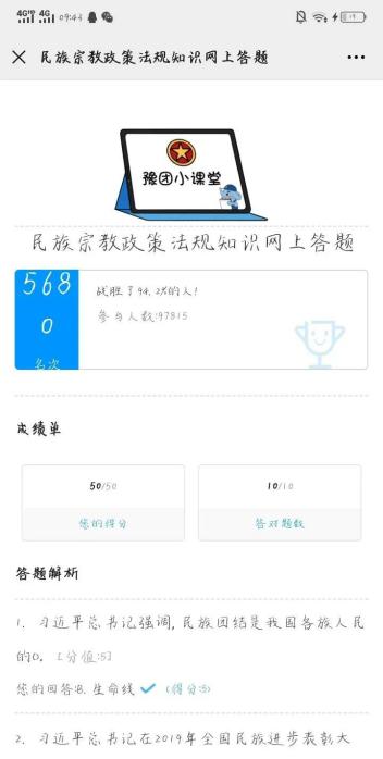 小筑们在这个时间段通过微博链接和微信公众号进行答题。比较特别的是这次题目多变,小筑们通过多次答题深入体会民族团结的力量,了解民族宗教相关法律法规。