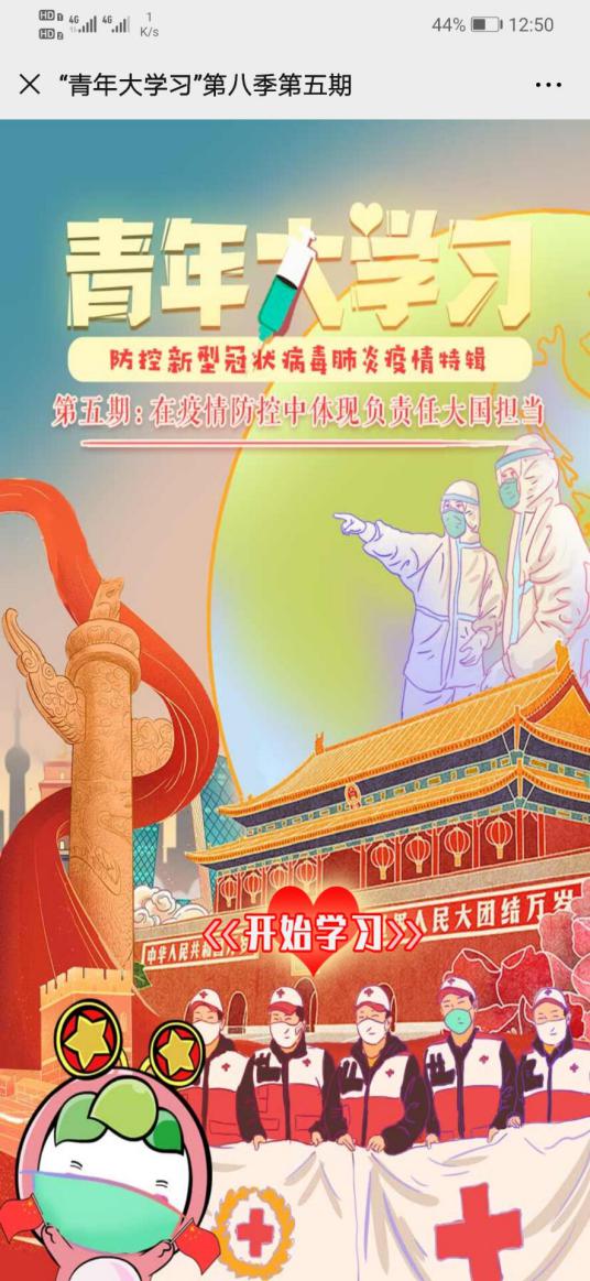 通过第五期青年大学习的学习和答题,同学们看到了我国作为一个大国的责任与担当,看到了疫情当下国际合作,人类命运共同体的形式,国家在疫情当下,保护我们,保护世界,作为学生为中华民族骄傲的同时,也要从身边做起,从小事做起,给有需要的人伸出援助之手,齐心协力共抗疫情。