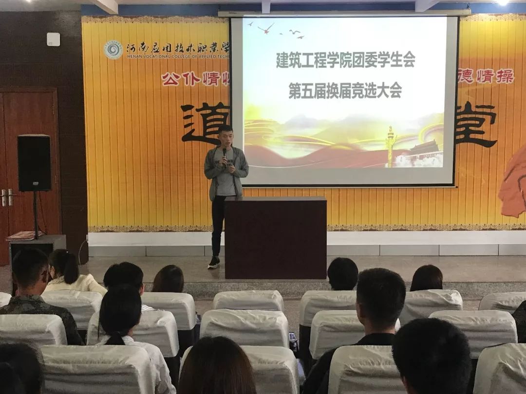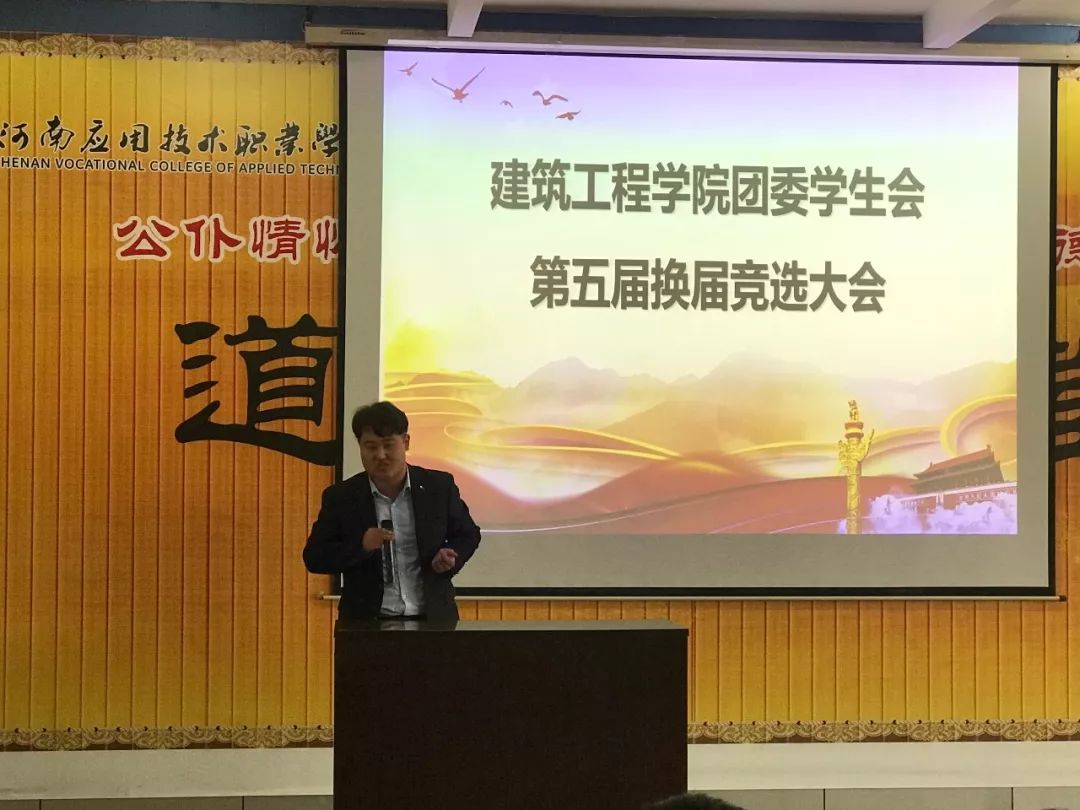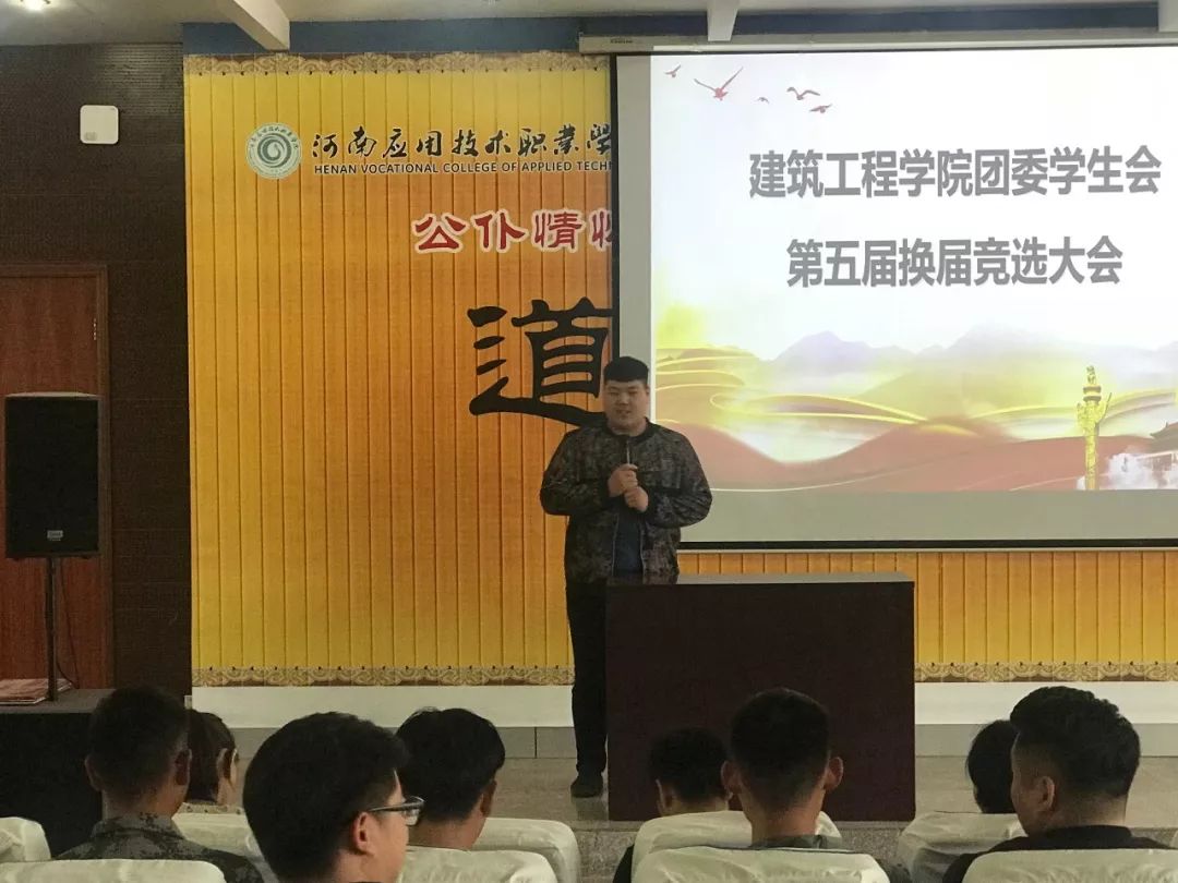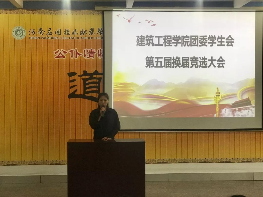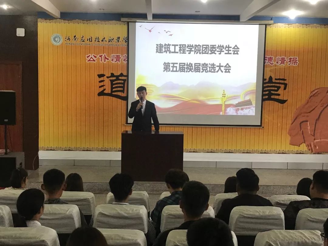 2018年9月20日中午12:30,建筑工程学院团学会第五届换届大会在B楼二楼学术报告厅进行竞选。建筑工程学院党总支书记马春燕老师与团总支书记刘亚娟老师主持了大会,
