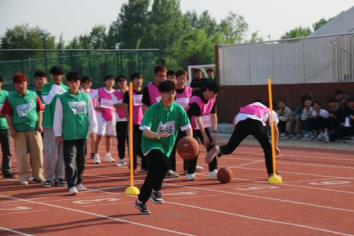 手中的三个排球承载着队伍满满的希冀,被同学们拥入怀里,又小心翼翼地在终点传递。有时球顽皮地从手中滚落,立马有同学大步冲向前,帮忙拾起那象征着集体力量的篮球,继续前行。一个完美的弧线和急转弯,凝聚着大家的希望!