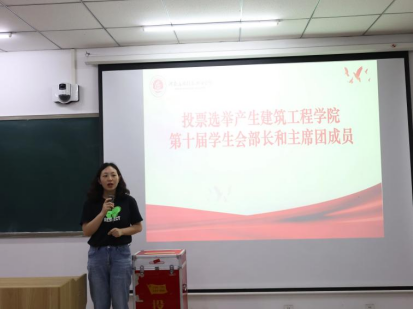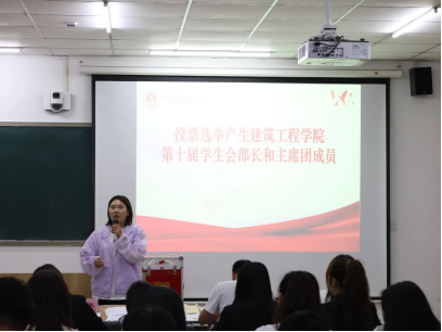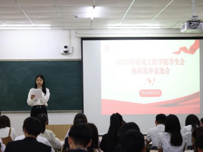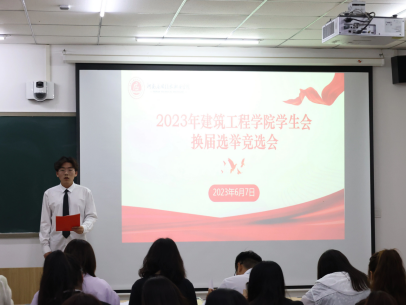 新时代赋予新使命,新时代书写新篇章。为进一步加强学生干部队伍建设,选拔一批政治坚定、作风过硬、品学兼优、素质全面的学生干部。2023年6月8日,建筑工程学院2023年学生会换届选举大会在SC204成功举办,会议由学院党总支副书记刘亚娟主持、辅导员李慧杰、李政、宋春磊、张慧、李玉飞参加。