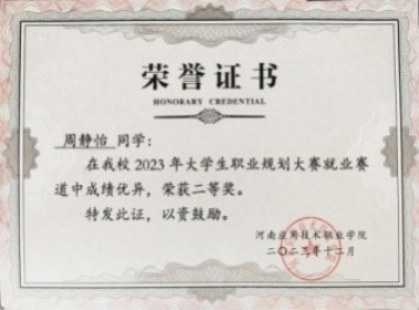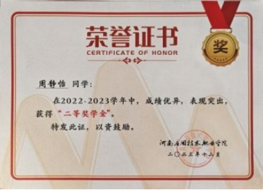 2023年05月,获得河南应用技术职业学院大学生讲爱国故事二等奖