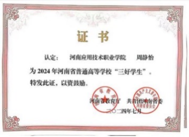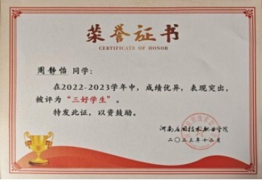 202年06月,获得河南应用技术职业学院2023年三好学生