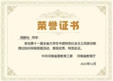 2023年10月,获得河南应用技术职业学院校级活力团支部