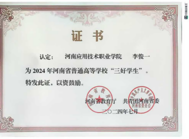 2023年06月,获得河南应用技术职业学院2023年三好学生