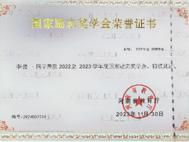 勤奋努力 争分夺秒“黑发不知勤学早,白首方悔读书迟。”该生坚信学习是进步的阶梯,自入校以来便刻苦钻研专业知识,努力学习,注重培养自己的学习方法和思维能力,深知扎实的专业知识是实现自身价值和未来在社会中立足的基础,因此他始终将学习放在首位,有着明确的学习目标和计划,充分利用课余时间提升自己。他坚持做好课前预习和课后复习,确保完成每一门课程的学习任务,不断总结归纳所学知识,构建起自己的知识体系,培养了独立思考的能力。作为学生干部,要在各方面起到模范带头作用,因此在学习上积极帮助同学们解决学习上的困难,监督并督促身边的同学,营造良好的学习氛围,与宿舍的同学们积极打造学习型宿舍,舍友学习成绩基本都在班级前20名。同时遇到各种问题,也积极虚心向同学、老师请教,逐渐完善自我,查缺补漏。在大一大二学年中,他的学业及综合排名都位居班级第一,并于2023年荣获国家励志奖学金、2023年荣获优秀共青团员、2024年荣获省级三好学生、2023年荣获校级三好学生、2023年荣获院级第九届“互联网+”大学生创新创业大赛一等奖等荣誉。