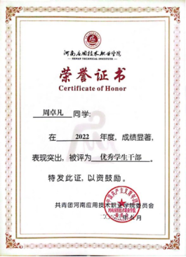 2022年5月河南应用技术职业学院优秀学生干部