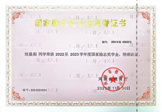 曾荣获“国家专利2项”、“国家励志奖学金”、校级“三好学生”、河南应用技术职业学院“学习二十大 志愿新时代”雷锋精神宣传月系列活动中先进个人等荣誉。