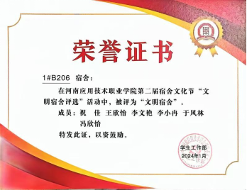 冯欣怡,女,汉族,中共预备党员,河南应用技术职业学院建筑工程学院2022级建筑室内设计专业2班团支书,2022-2024学年全学院成绩加权平均成绩第二,专业排名第二。在校期间学习成绩优异、积极参加各类活动及比赛。曾荣获校级一等奖学金、三好学生等荣誉。