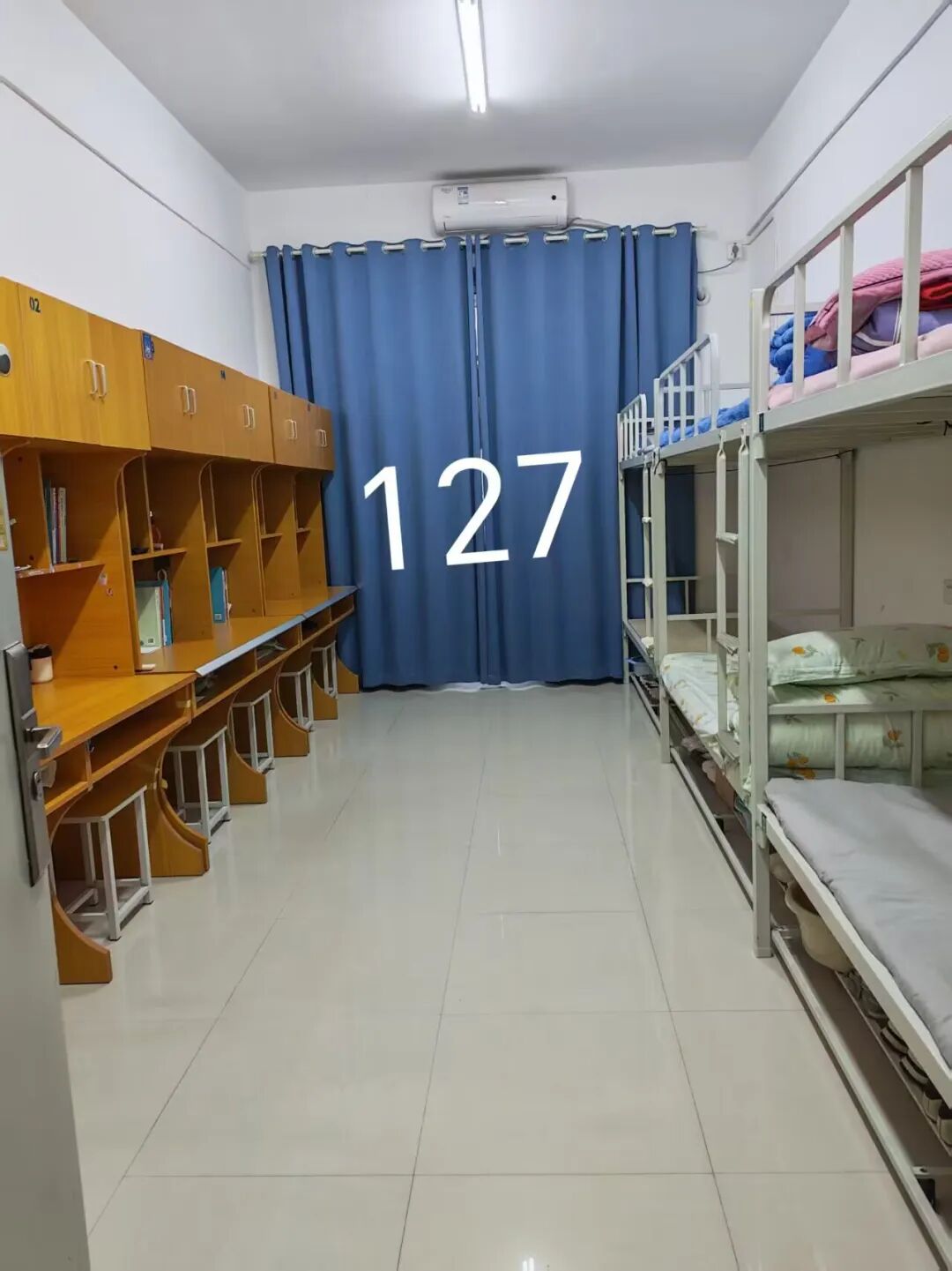 推开宿舍门,映入眼帘的是摆放整齐的专业书籍,一尘不染的桌面地面,每一处细节都彰显着同学们良好的生活习惯和昂扬的精神面貌。