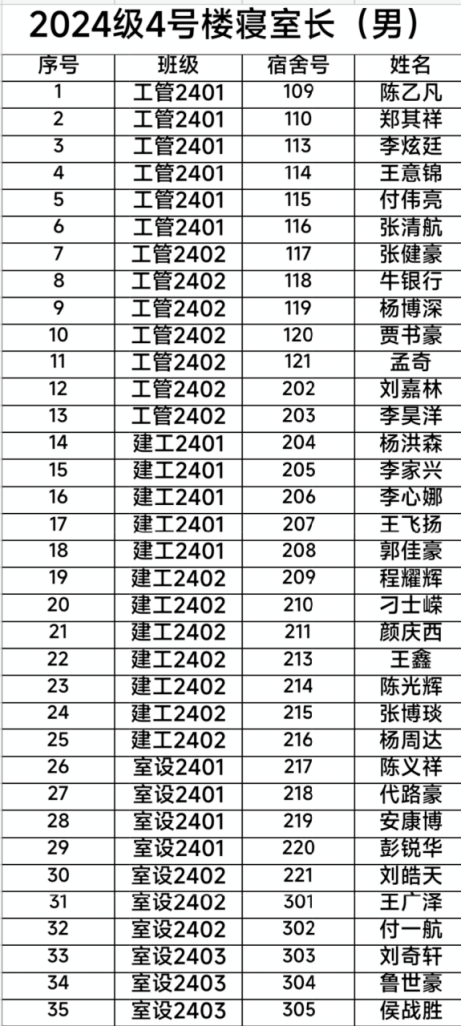 家人们谁懂啊!建筑工程学院4号楼即将迎来一批超给力的“寝室操盘手”!为了让咱们的宿舍从“舒适大本营”变身“文明样板间”,学院最近搞了一场超严格的宿舍长“选秀大赛”!经过层层PK,2024-2025学年第二学期的寝室长天团终于成团出道,名单新鲜出炉,速来围观!