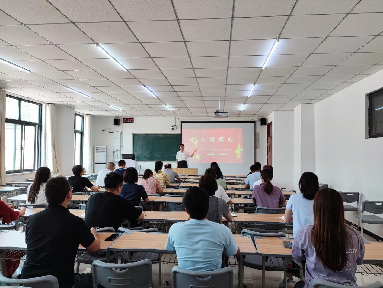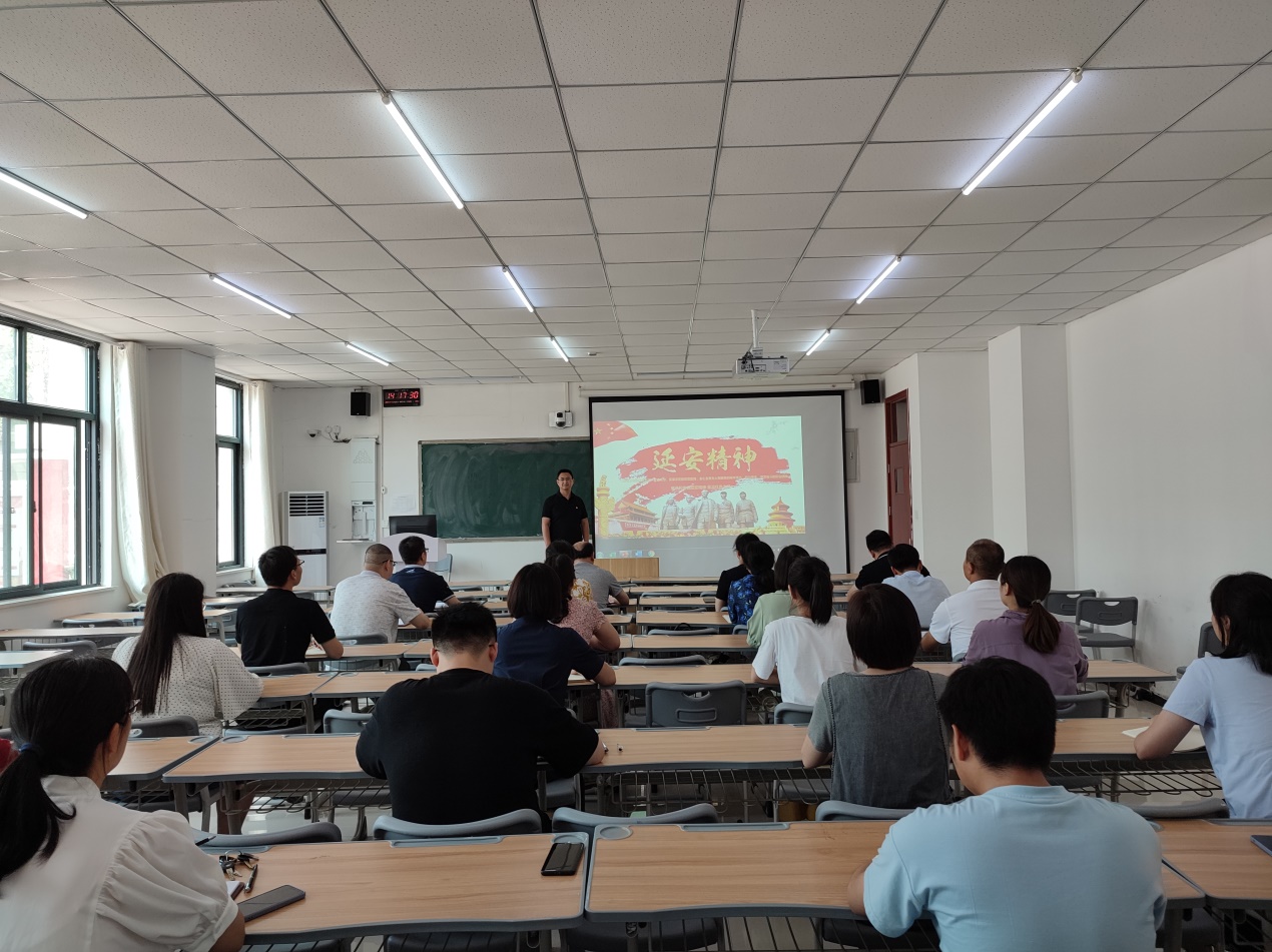 本次党课,樊磊老师以《延安精神》为题,围绕正确理解延安精神的实质和深刻内涵进行阐述,对如何践行“不忘初心,牢记使命”,严肃政治纪律,强化政治规矩进行讲解。延安精神是红色革命精神之一,是中国共产党创造的一种革命精神。因在革命圣地延安诞生,故名延安精神,主要内容包括:实事求是、理论联系实际的精神,全心全意为人民服务的精神和自力更生艰苦奋斗的精神。张瑾老师以《入党初心》为题,结合自己的工作实际,对共产党员如何立足岗位讲奉献进行了讲解。