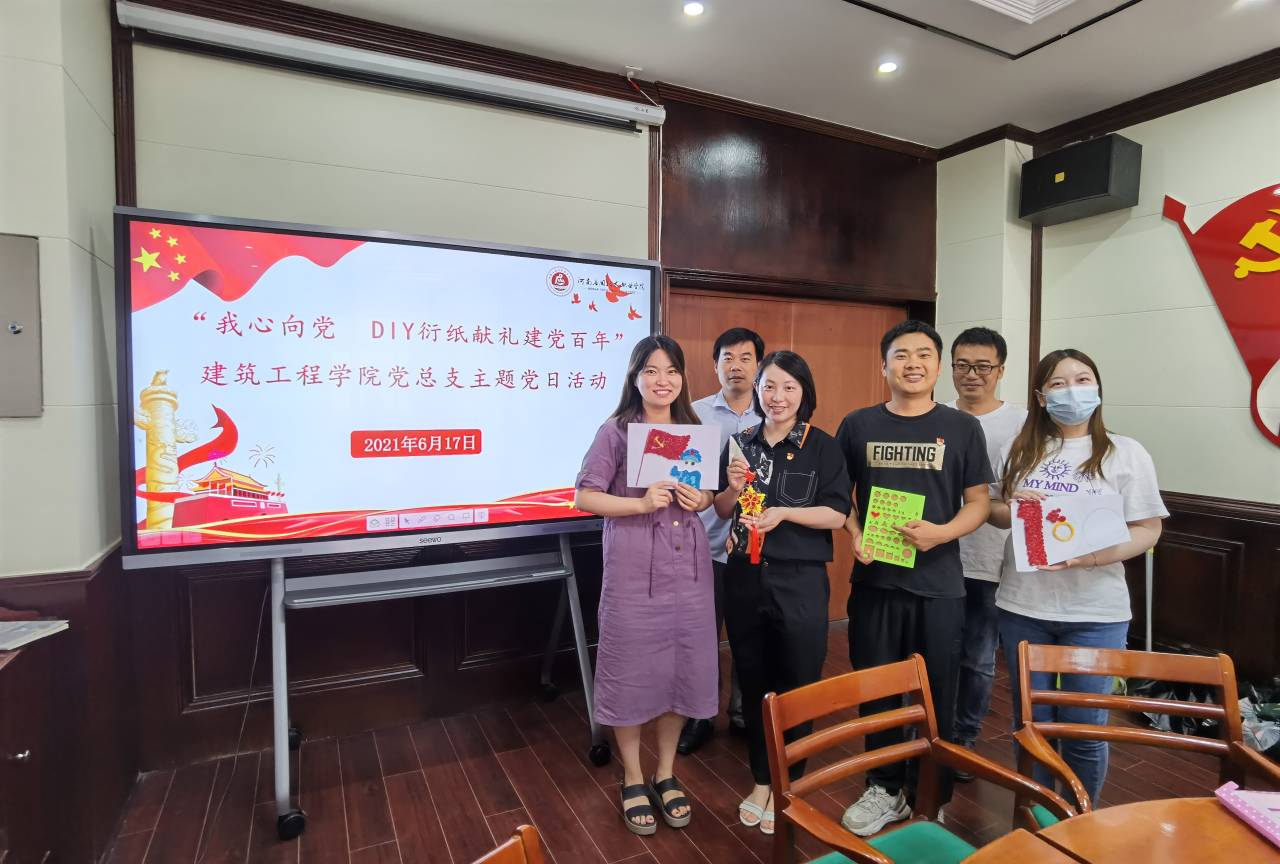 为庆祝中国共产党成立100周年,开展党史学习教育活动,增强党组织的凝聚力和向心力,6月17日,建筑工程学院党总支组织开展了“我心向党 DIY衍纸献礼建党百年”主题党日活动。党员教师、学生党员代表积极参与,以喜闻乐见的艺术形式向建党100周年献礼。
