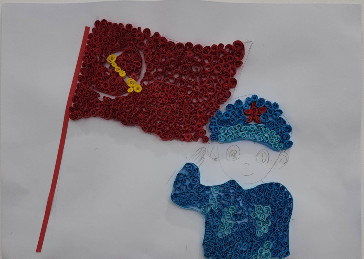 衍纸艺术,被称之为“指尖上的艺术”。它是通过卷曲、弯曲,捏压而形成原始设计形象的一门折纸艺术,非常考验制作者的耐心和动手能力。活动中,大家在衍纸艺术老师的指导下,兴致勃勃地动手制作各自的作品,尽管初次制作,手艺略显生疏,但在众人的通力合作中,以指尖的卷、捏、拼、贴组合,一幅幅幅生动灵巧的“党旗”、“党徽”、建党100周年标识等作品,用红色文艺作品献礼党的百年华诞。