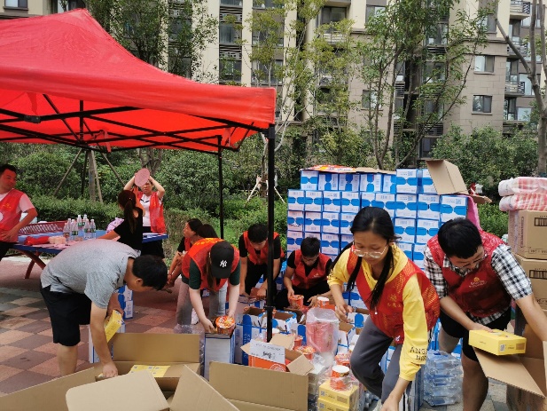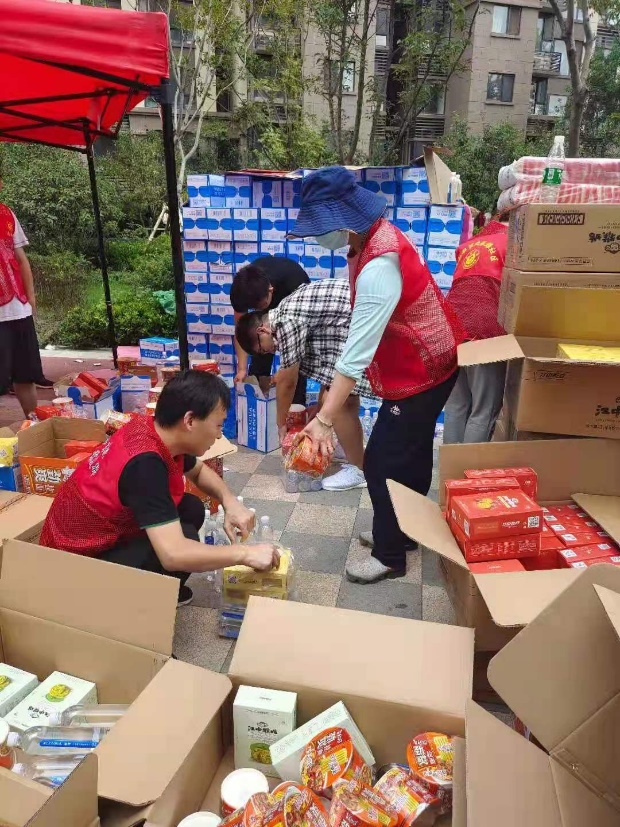 险情就是命令,防汛就是责任。做好防汛救灾工作是当前的一项重大政治任务。7月24日上午9时,当建筑工程学院党总支书记马春燕得知秋雅社区分发救灾物资缺人手的时候,她再次召集7名党员教师和5名学生党员走进社区支援。大家负责分装发放9、10、11、12四栋楼物资,遇到行动不便的老人或者带孩子的妇女时,大家帮忙运送上楼。