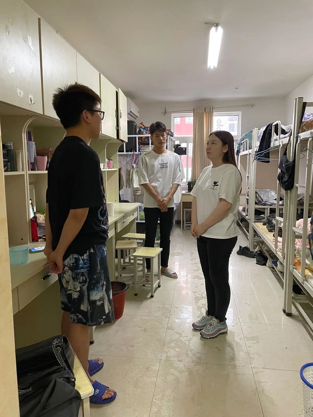 为贯彻落实党史学习教育动员部署大会精神,开展好“我为师生办实事”,在悠长暑假来临之际,切实做好校园安全工作,确保暑期校园安全无隐患。6月28日,在建筑工程学院学院党总支书记马春燕的安排部署下,学工办主任刘高喜带领19级、20级辅导员对学生宿舍进行了细致全面的安全隐患大排查。